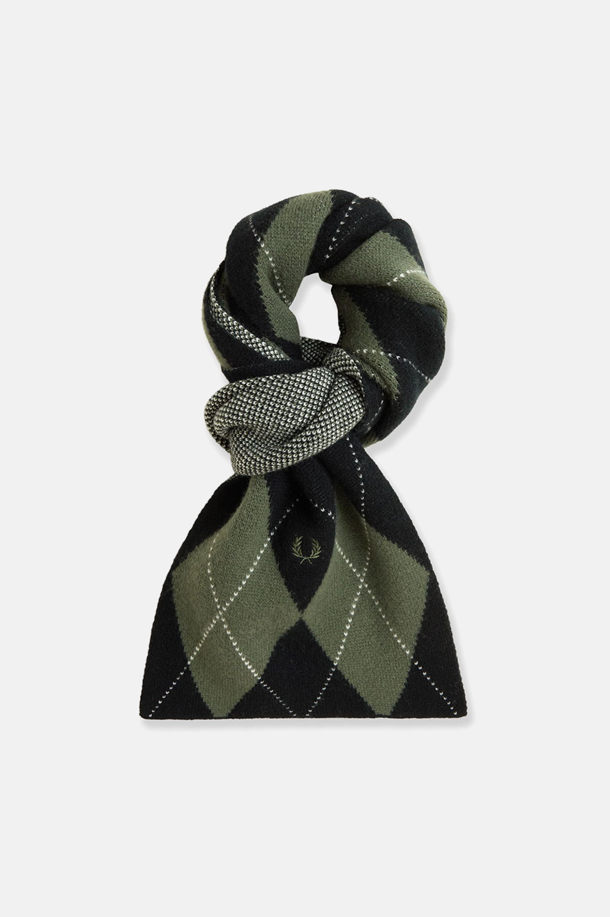 A wool scarf in a bold Argyle knit with a soft brushed finish.