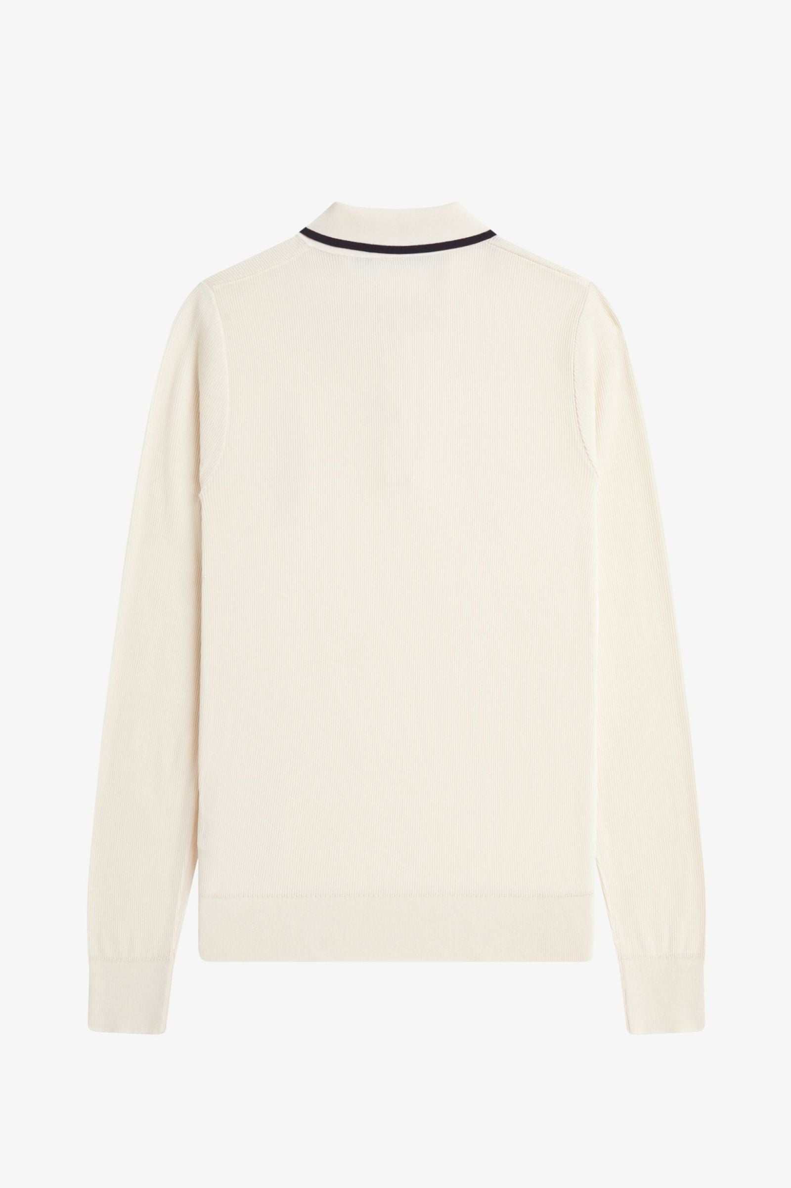 Recycled viscose and recycled nylon knit / Regular fit / Ribbed cuff and hem trim / Two button placket with mock horn buttons / Embroidered Laurel Wreath logo to the left chest