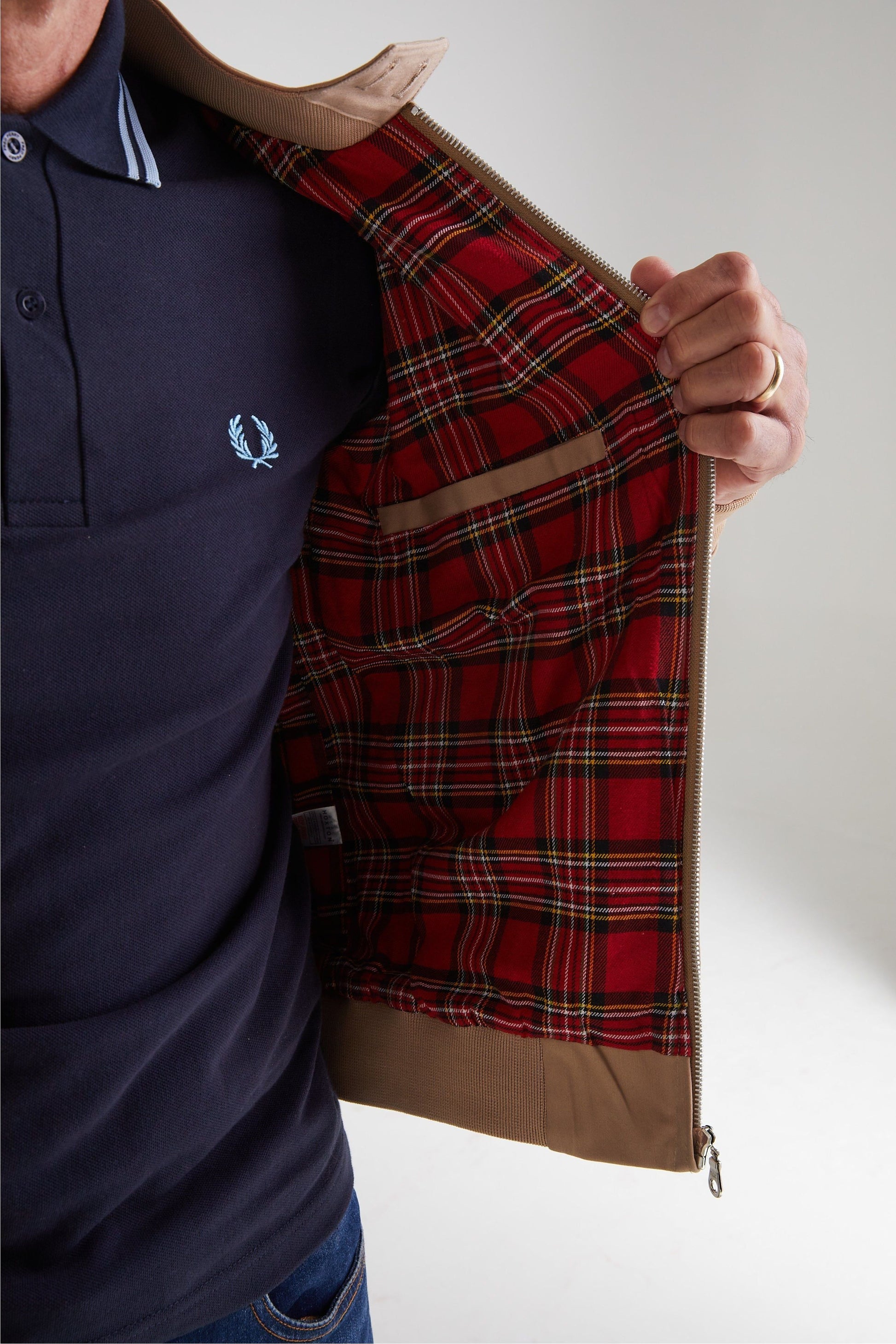 A classic fit jacket which features mid-weight 100% breathable cotton fabric for the outer layer, a two-button collar, two external pockets, an inside pocket, ribbed hem and cuff, a front-fastening zip, Raglan sleeves, umbrella vent on the back and the timeless Stewart tartan checked lining.