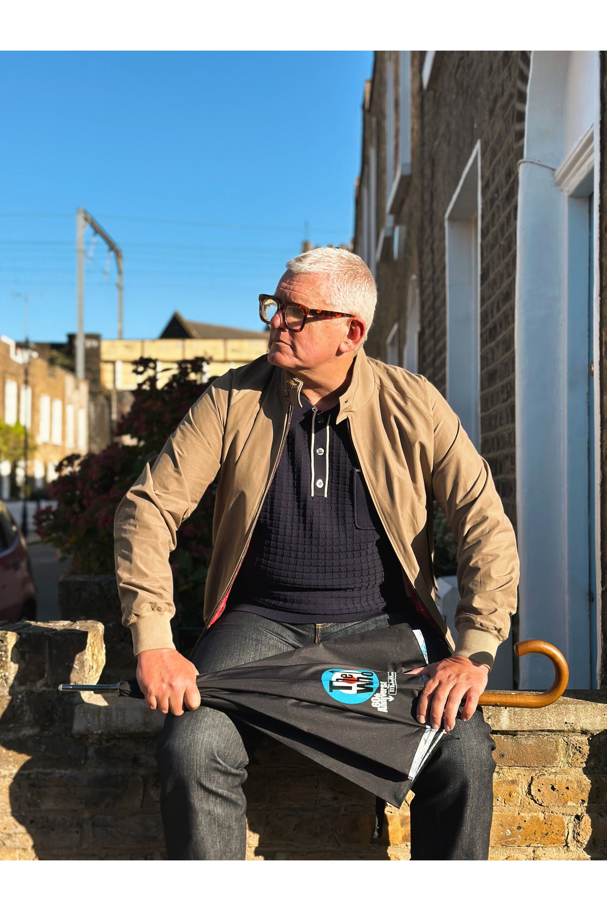 Subtle on the outside, the only external branding to this beautiful traditional high performance luxury black walking umbrella is our 'Modfather Clothing x